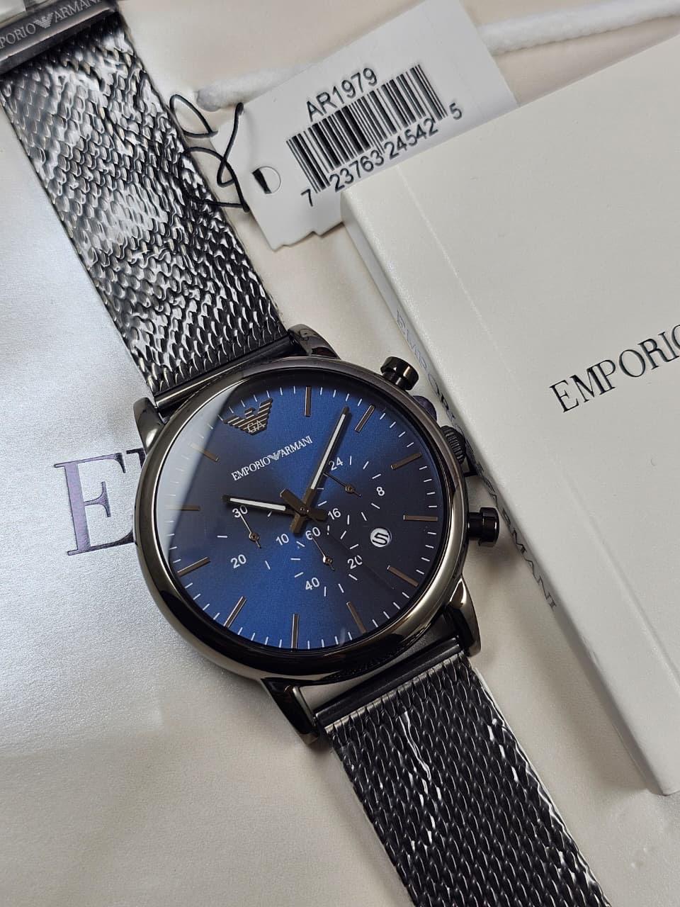 Emporio Armani Watch For Men Luigi AR1979 is stylish and strong. It has a blue dial and grey stainless steel belt. Perfect for daily wear and special events. Looks classy and feels comfortable on the wrist.