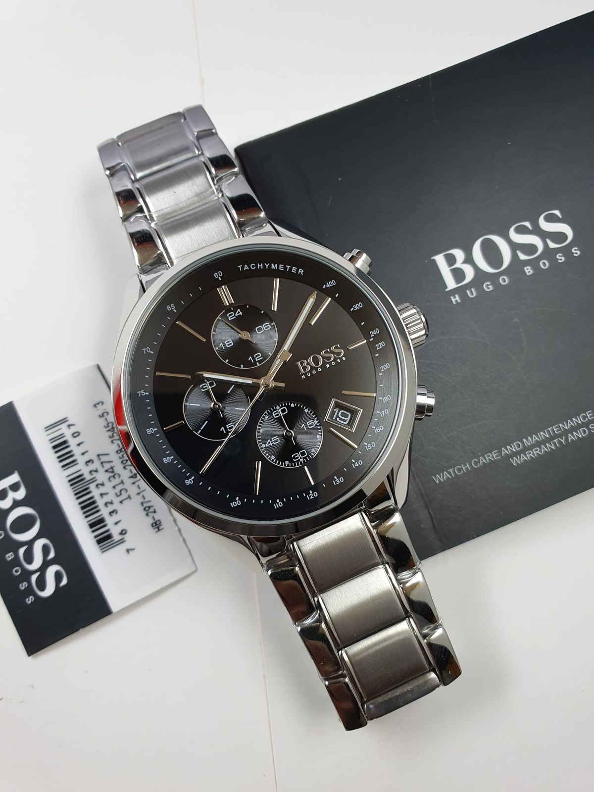 The HUGO BOSS Grand Prix 1513477 looks great on any man. It features a sharp black face and a smooth silver metal strap. This watch tracks the time and date while staying tough. It is a perfect choice for work or a fancy night out.